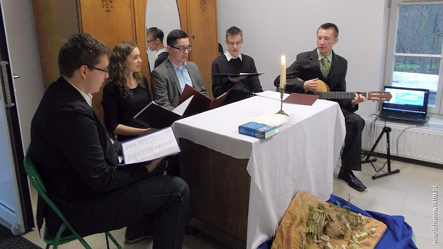 Pisząc o świętach Bożego Narodzenia nie można zapomnieć o małych artystach należących do formacji Dzieci Maryi, działającej przy parafii Chrystusa Króla. Grupa koordynowana przez Katarzynę Kordowską już po raz trzeci odwiedziła mury naszego hospicjum. Staje się tradycją, że w okresie świąt Bożego Narodzenia podopieczni Hospicjum „Światło”, dzięki bożonarodzeniowej inscenizacji, mogą cieszyć się radością świąt podwójnie. I tym razem spotkanie to stało się okazją do wielu wzruszeń.