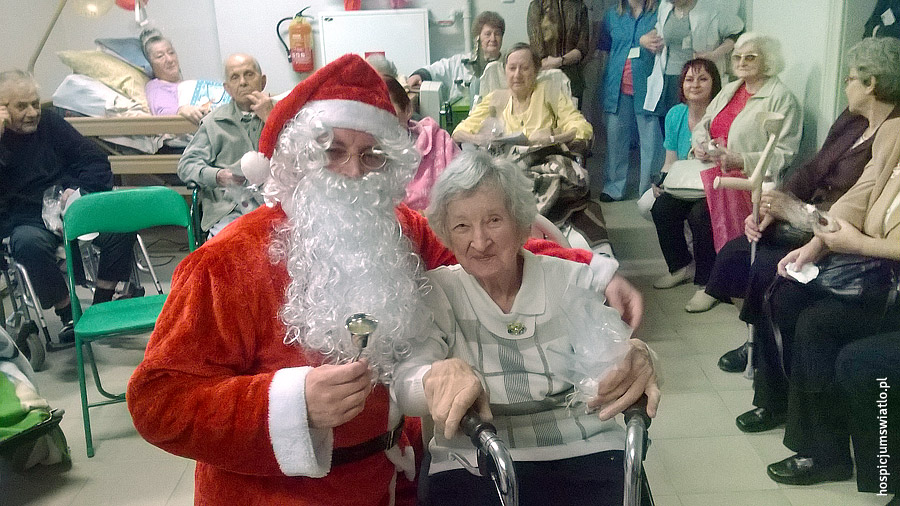 Korzystając z tych możliwości wracamy pamięcią do około świątecznych wydarzeń w Hospicjum „Światło”. 19 grudnia, na niecały tydzień przed Bożym Narodzeniem, naszych podopiecznych odwiedził Święty Mikołaj. Spotkanie to dało dużo radości zarówno chorym przebywającym w hospicjum stacjonarnym jak i gościom przybyłym z hospicjum domowego. Starania wolontariuszy, którzy przygotowali montaż słowno-muzyczny sprawiły, że wspólne kolędowanie nabrało wyjątkowego charakteru.